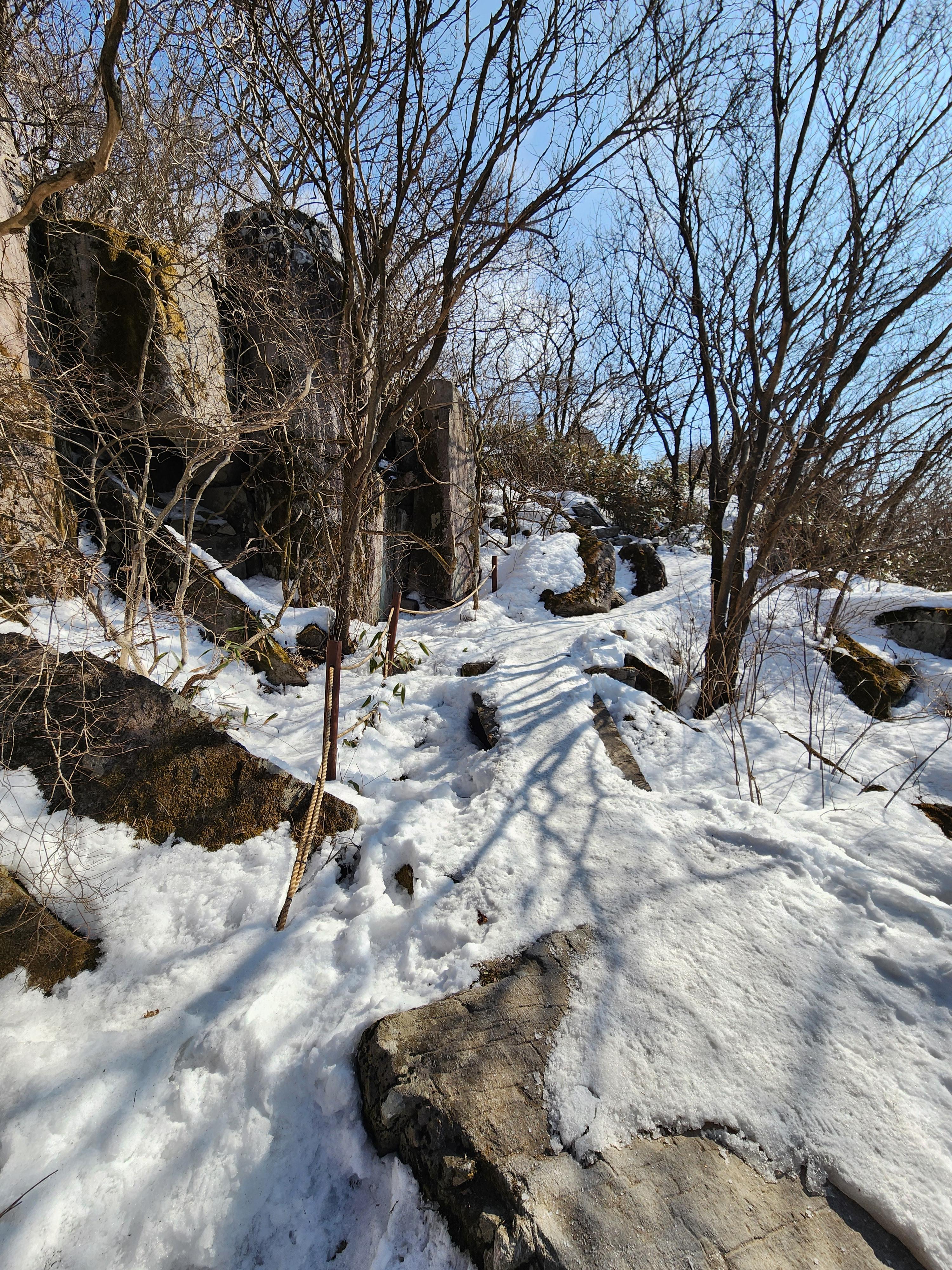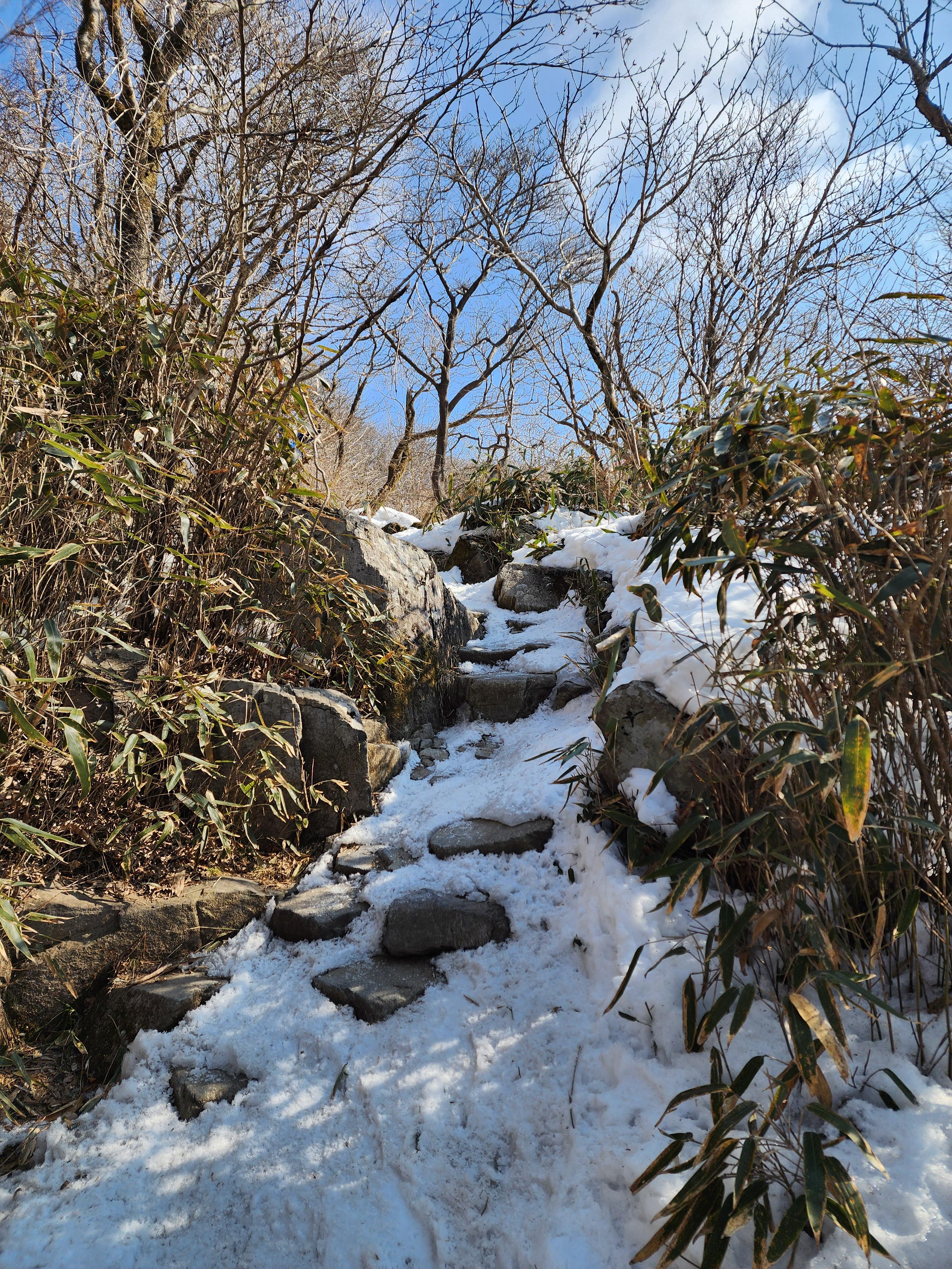 중간쯤 눈길이라 아이젠 착용~
