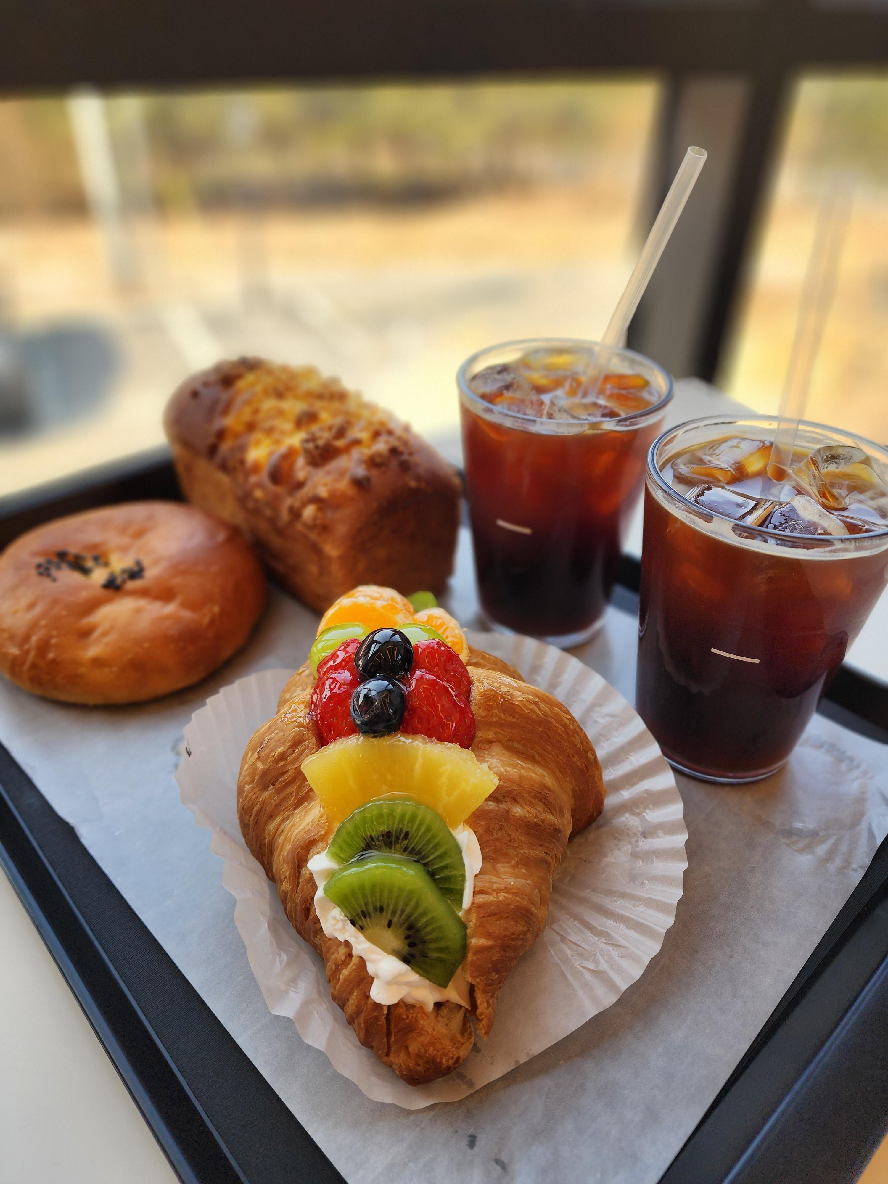 근처 카페서 커피와 빵 냠냠~